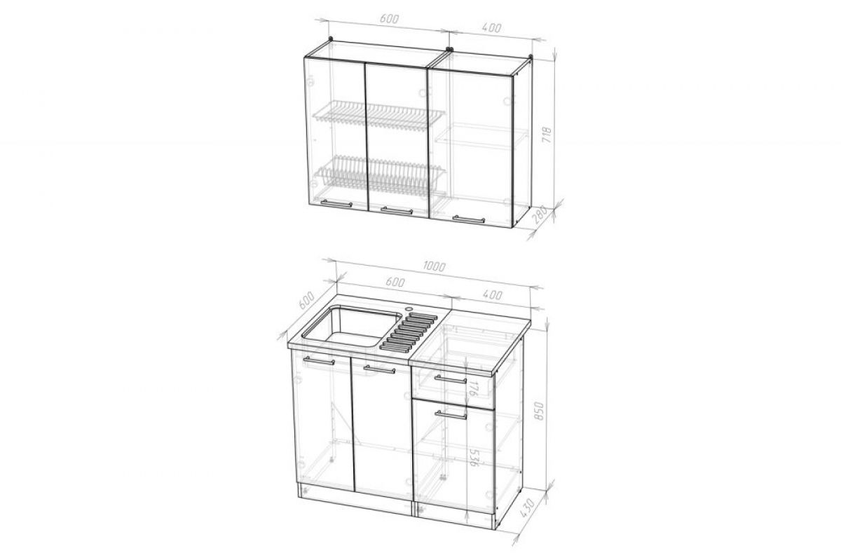Кухонный гарнитур Амели мини 1000 мм