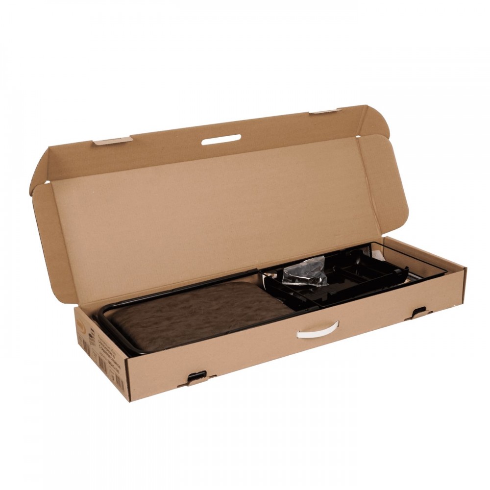 Материал: Стальная труба диаметром 10 мм; пластиковые заглушки; полимерно-порошковое покрытие; ДСП 16 мм; поролон, винилискожа.