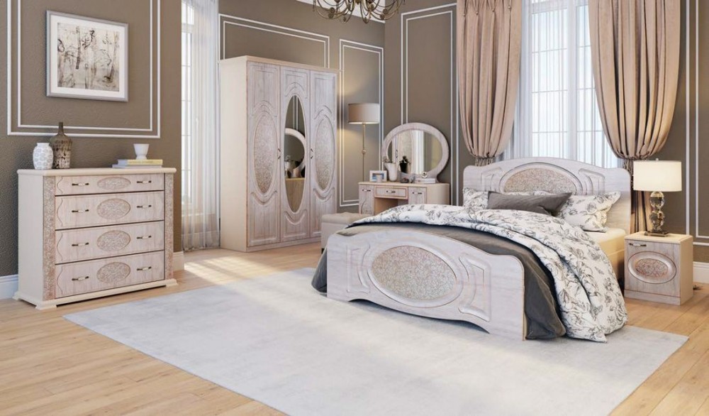 Интернет-магазин "Мебель 24" рад предложить Прованс-2 Шкаф 3-х дверный с зеркалом (Бежевый/Текстура белая платиной золото) M426560 по привлекательной цене, от производителя Террикон.