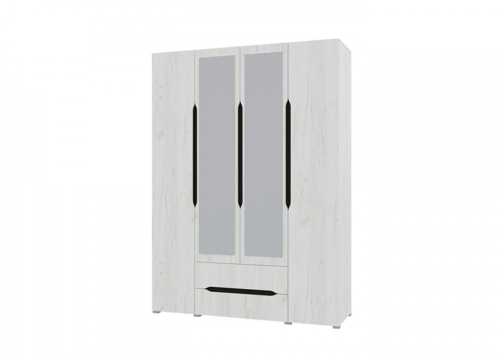 Шкаф 4х створчатый с зеркалами Вега (Крафт белый - Венге)