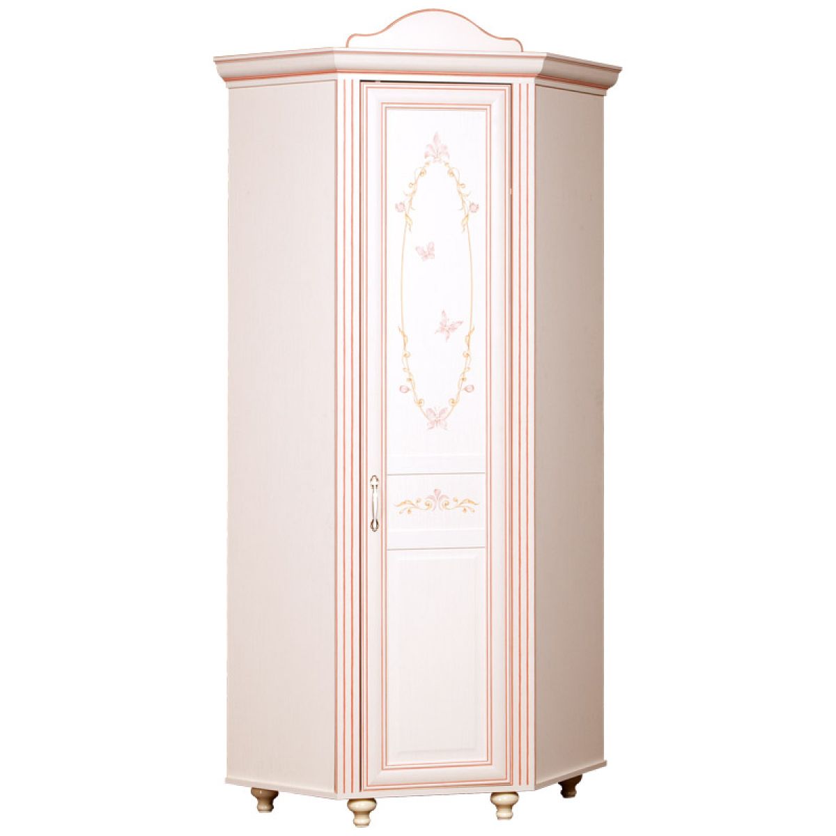 Фурнитура: ручка металлическая под золото с белыми вставками под эмаль, ножки пластмассовые на металлической опоре, петли, амортизатор ударов, штанга для одежды в комплекте